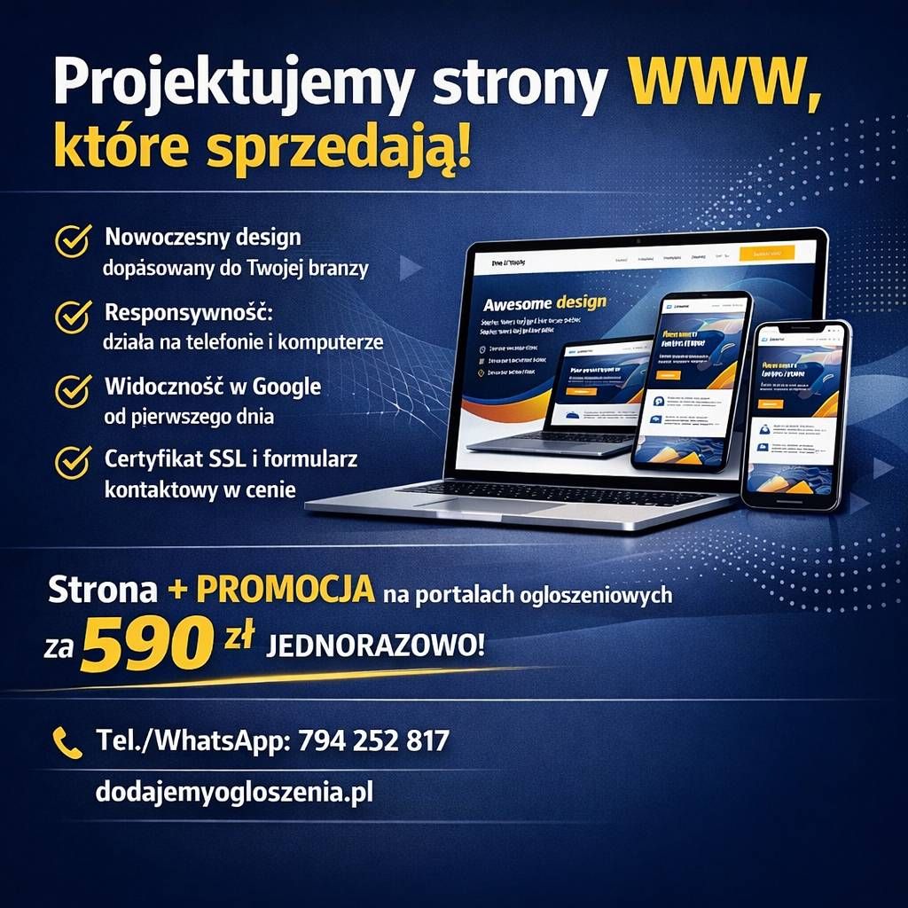 Zajmujemy się też kompleksową promocją firm w internecie. Jeśli chcesz dotrzeć do większej liczby klientów - publikujemy ogłoszenia na dziesiątkach popularnych portali ogłoszeniowych w całej Polsce. Skutecznie, szybko i w przystępnej cenie. Zapytaj nas o szczegóły!