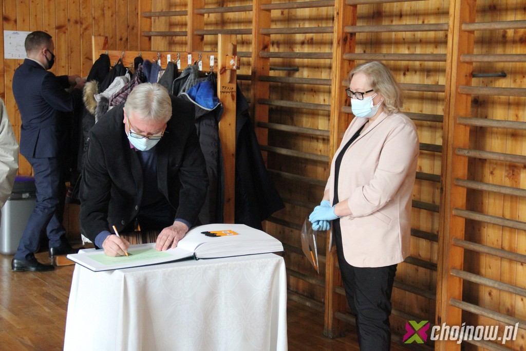 W dzisiejszej uroczystości, oprócz przedstawicieli szkoły, udział wzięli członkowie zarządu powiatu, w tym starosta Adam Babuśka, wicestarosta Janina Mazur oraz Krzysztof Sowiński. Na miejscu nie zabrakło radnych oraz przedstawicieli samorządu miejskiego z burmistrzem Janem Serkiesem na czele.