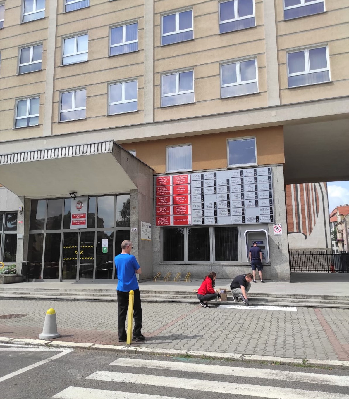 W ostatni weekend w powiecie legnickim członkowie Stowarzyszenia „Młody Dolny Śląsk” malowali napisy przed przejściami dla pieszych o treści „Odłącz się i przejdź bezpiecznie”. Akcja realizowana była przed budynkiem Starostwa oraz na terenie naszych jednostek organizacyjnych.