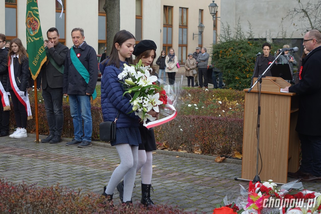 Pod obeliskiem na ulicy Chmielnej odbyła się oficjalna część obchodów Narodowego Święta Niepodległości. Wkrótce potem w sąsiednim Domu Schrama rozpoczął się koncert przygotowany przez uczniów Szkoły Podstawowej nr 4. Zobacz zdjęcia z wydarzenia.