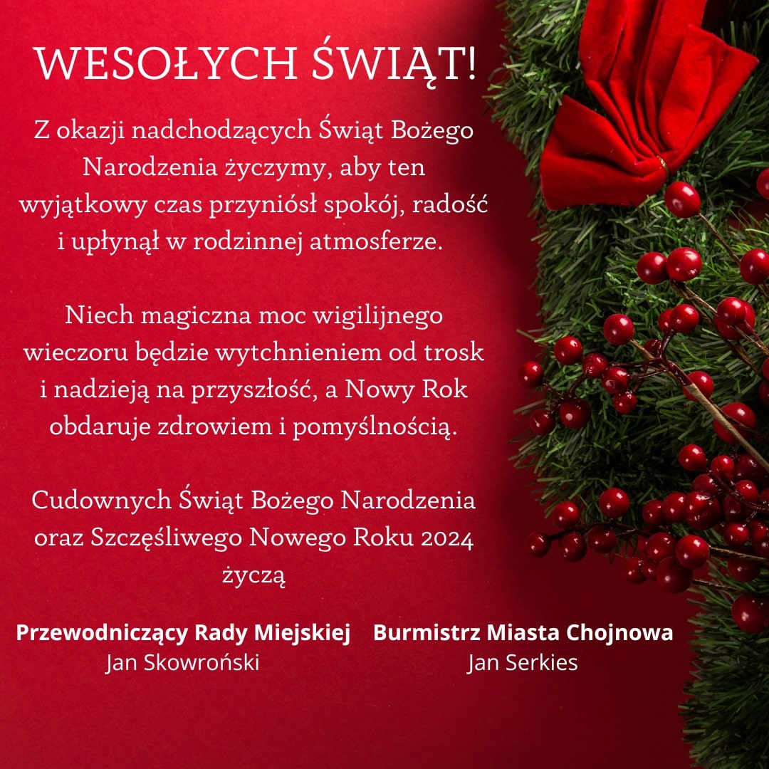 Autor Urząd Miejski w Chojnowie Data utworzenia: 20 grudzień 2023, 17:41