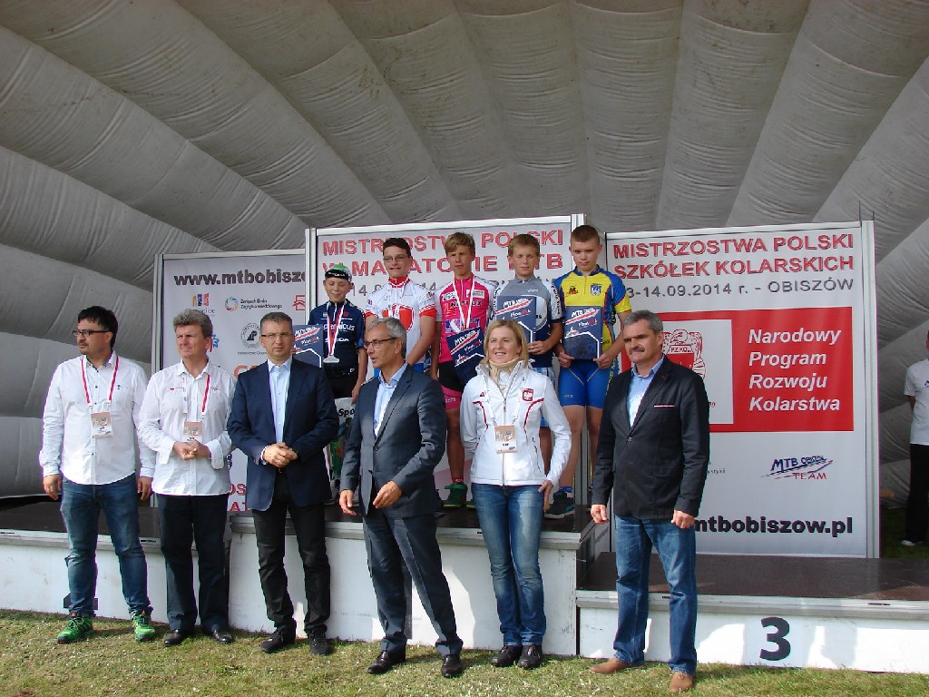 Miniony weekend bardzo pracowicie spędzili kolarze UKK Oriens MTB Chojnów. Nasi najmłodsi miłośnicy dwóch kółek, mowa tu o żakach oraz żakiniach, rywalizowali na bardzo trudnej trasie w Obiszowie podczas I Mistrzostw Polski Szkółek Kolarskich. Ta impreza sportowa znalazła się w tegorocznym kalendarzu PZKolu. Młodzi chojnowianie, oprócz trudów związanych z w wyścigiem, mieli możliwość poznania Ministra Sportu – Andrzeja Biernata oraz Prezesa PZKolu – Wiesława Skarula.