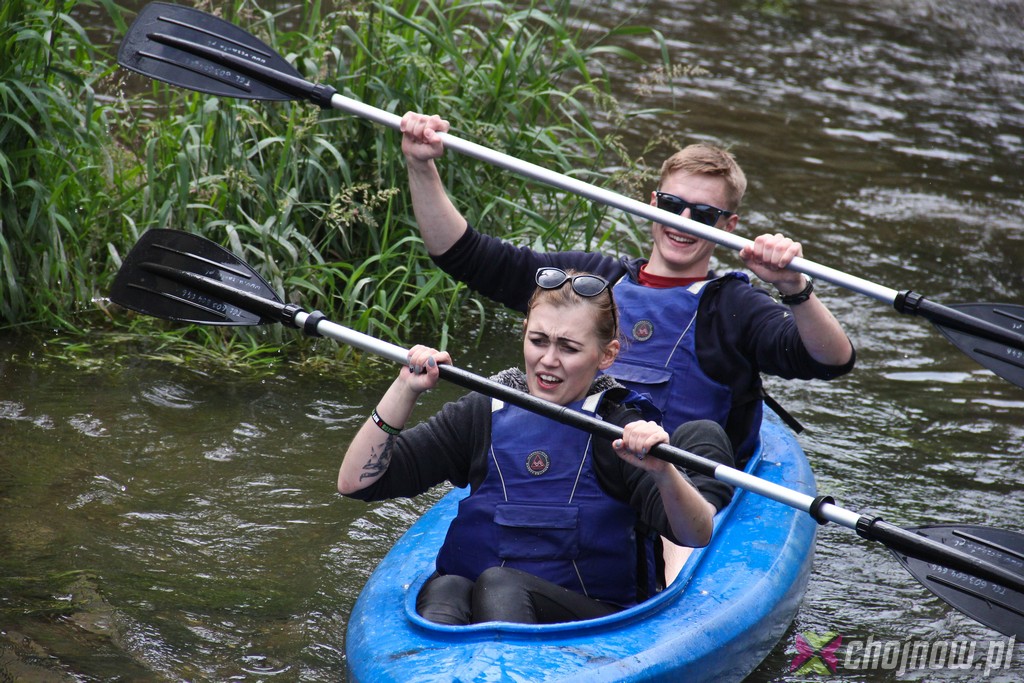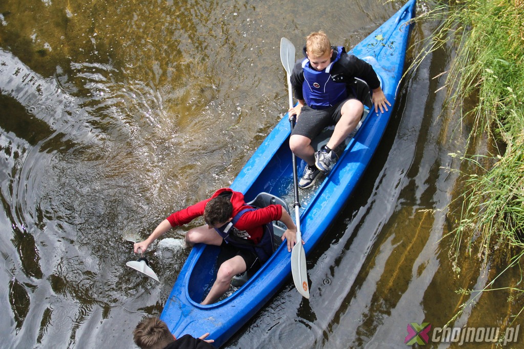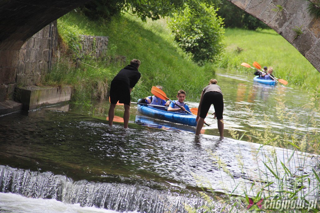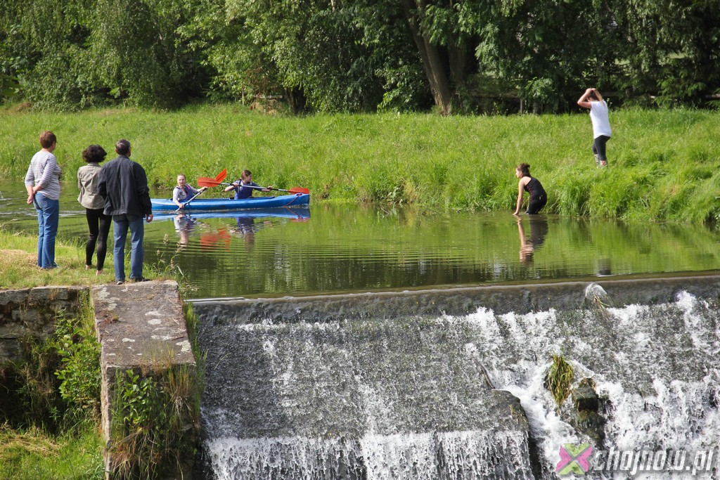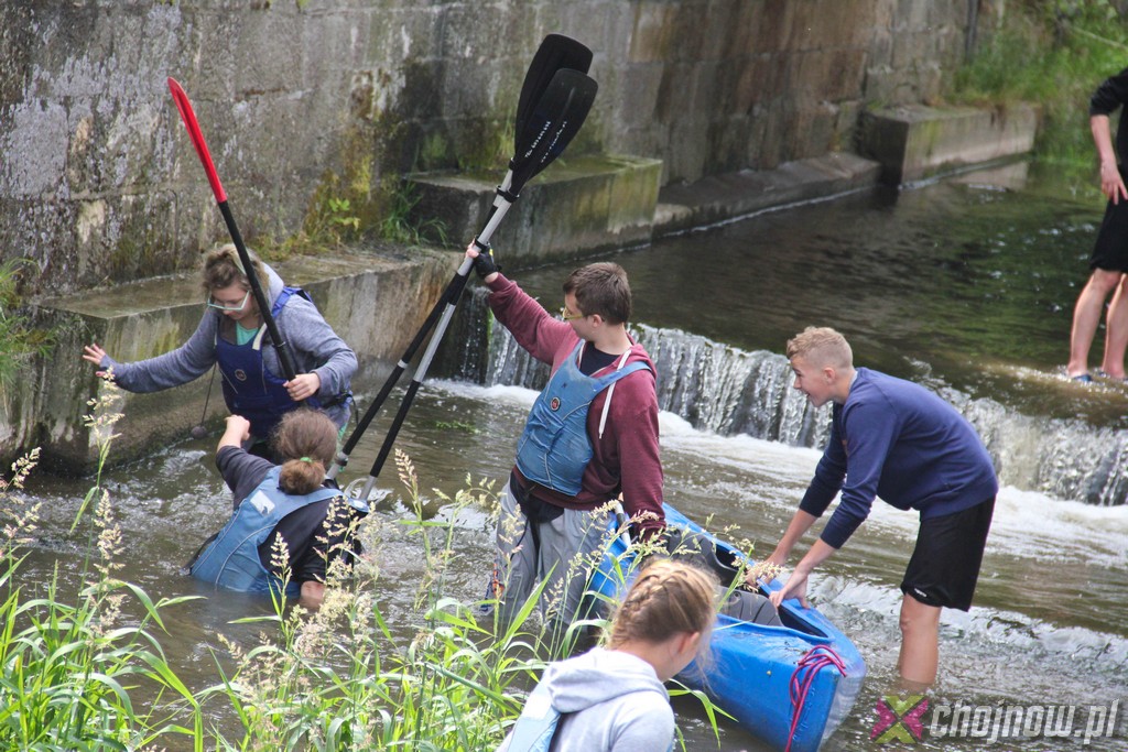 Ale miłośnicy kajakarstwa z "Jedynki" lubią takie wyzwania. Utrudnienia na szlaku nikogo nie zniechęcają, wręcz przeciwnie, dodają smaczku przedsięwzięciu. Nawet nowicjusze na kolejnych przeprawach radzili sobie znakomicie. Strudzeni kajakarze zatrzymali się w Jadwisinie na posiłek i po sytej grochówce z kiełbasą popłynęli w stronę Chojnowa.