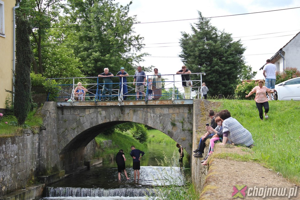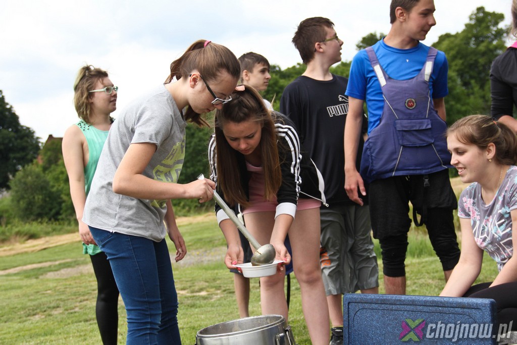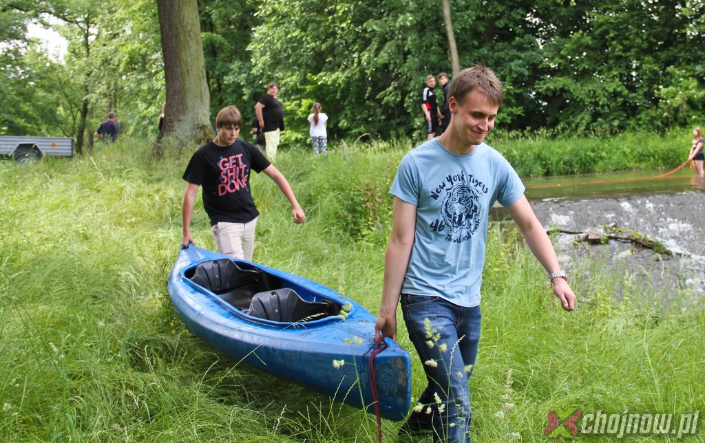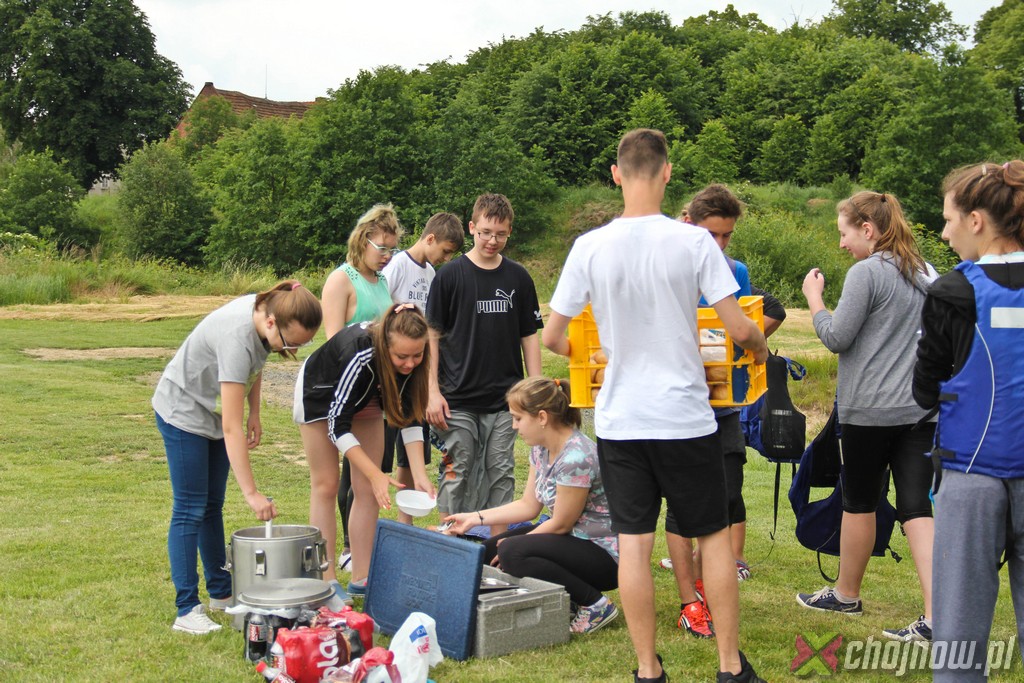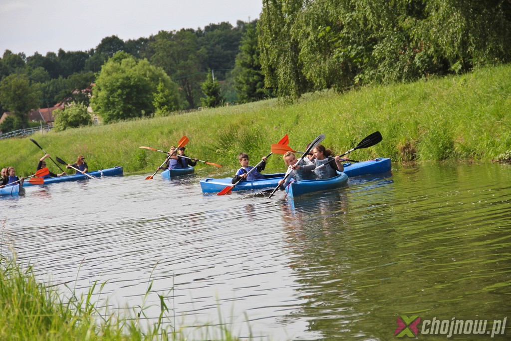 Ale miłośnicy kajakarstwa z "Jedynki" lubią takie wyzwania. Utrudnienia na szlaku nikogo nie zniechęcają, wręcz przeciwnie, dodają smaczku przedsięwzięciu. Nawet nowicjusze na kolejnych przeprawach radzili sobie znakomicie. Strudzeni kajakarze zatrzymali się w Jadwisinie na posiłek i po sytej grochówce z kiełbasą popłynęli w stronę Chojnowa.