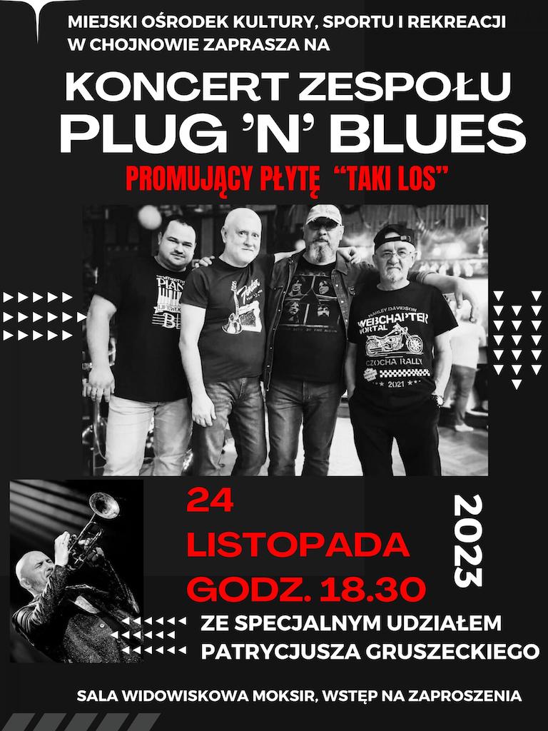 Koncert Plug'n'Blues – MOKSiR, 24 listopada, godz. 18:30Przed nami wyjątkowy koncert dobrze znanego chojnowianom zespołu Plug'n'Blues. Koncert promować będzie płytę „Taki los”. Gościem specjalnym wydarzenia będzie Patrycjusz Gruszecki – wybitny trębacz, kompozytor i wokalista, zdobywca wielu prestiżowych nagród, który obecnie należy do zespołu Anny Wyszkoni.