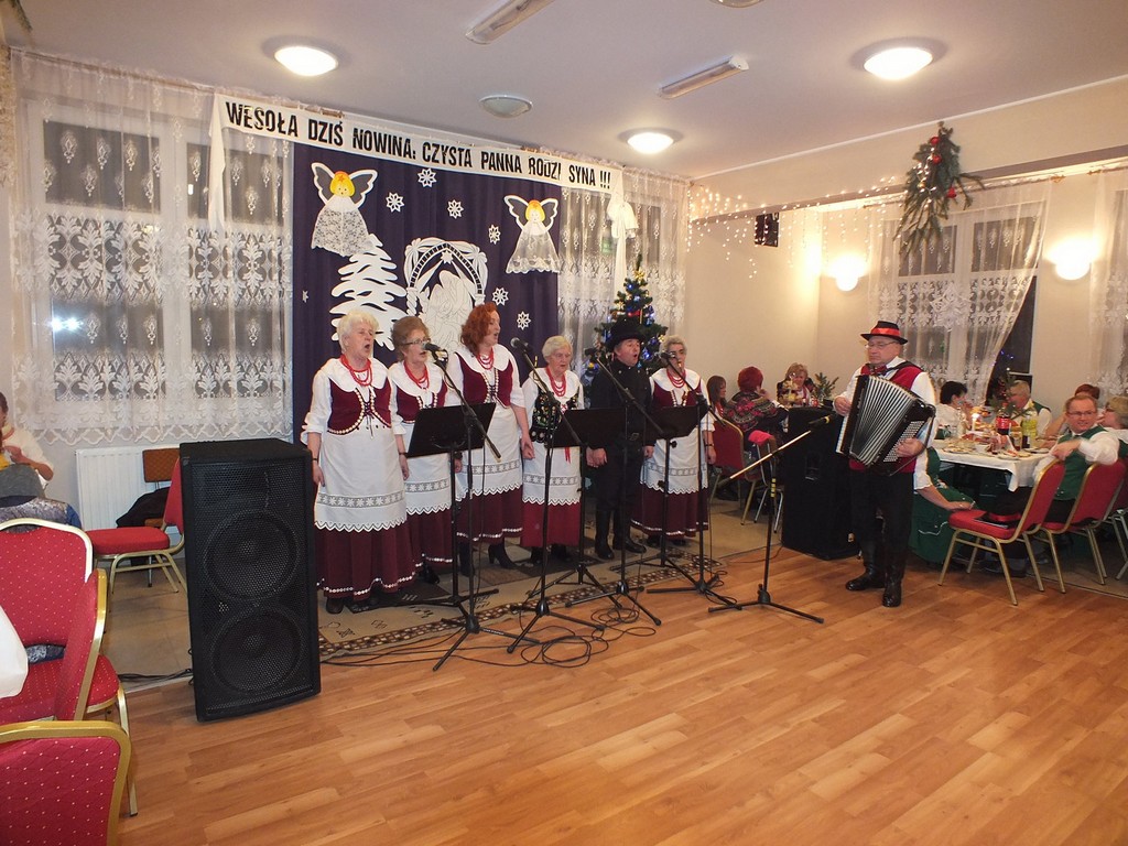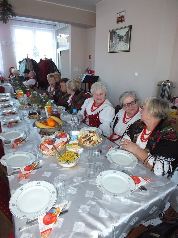 Po Jasełkach nadszedł czas na występy pozostałych gminnych zespołów folklorystycznych. Wykonawcy prezentowali bogaty repertuar tradycyjnych kolęd i pastorałek. –Bis! Bis! – słychać było po każdym występie. Strudzone śpiewaniem zespoły zasiadały przy stołach biesiadnych. Poczęstunek dla zgromadzonych przygotowały panie z zespołu „Albinki”. Na co dzień łączy nas śpiewanie, ale okazało się, że czas spędzony na wspólnym gotowaniu też dał nam wiele radości - powiedziała przewodnicząca zespołu Albina Szczecina.